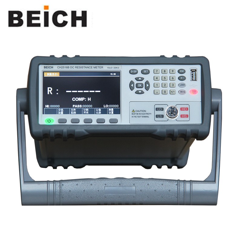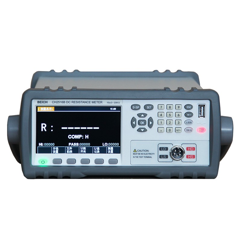 CH2516/A/B系列直流電阻測試儀具有高精度寬量程高性價比的特點,采用當(dāng)前主流的32bits CPU和高密度SMD貼裝工藝、24位色4.3英寸IPS彩色液晶屏,界面直觀清爽、操作便捷。儀器具有較高的抗干擾性;量程范圍為: 1uΩ-2MΩ;顯示位數(shù)為四位半;測試速度可達(dá)20次/秒;測試精度可達(dá) 0.05%;溫度補償能免除環(huán)境溫度對測試工作的影響;本儀器配備有專業(yè)分選功能與數(shù)據(jù)輸出功能等,具有多樣分選訊響設(shè)置,還可匹配Handler接口,應(yīng)用于自動分選系統(tǒng)完成全自動流水線測試,使測試效率倍增。并配備RS232接口,用于遠(yuǎn)程控制和數(shù)據(jù)采集與分析。本儀器小巧、緊湊但功能齊全。通過四端子測試法,可高速、高精度的測量各種高、中、低值電阻器;各種開關(guān)接觸電阻;接插件接觸電阻;繼電器線包和觸點電阻;變壓器、電感器、電機、偏轉(zhuǎn)線圈繞線電阻;導(dǎo)線電阻;車、船、飛機的金屬鉚接電阻;保險絲、電阻器、導(dǎo)電橡膠的直流電阻、印制板線條和孔化電阻等直流低電阻。由于儀器配備有溫度補償功能,因此適合于測量電阻值因溫度而發(fā)生變化的被測對象。儀器廣泛用于研究開發(fā)、生產(chǎn)線、進(jìn)料檢測等各種場所。